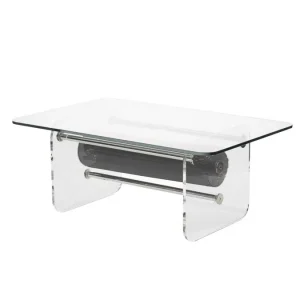 Masuta Living colectie KUUMO MW, perna maro, laterale PMMA, transparente si blat de sticla